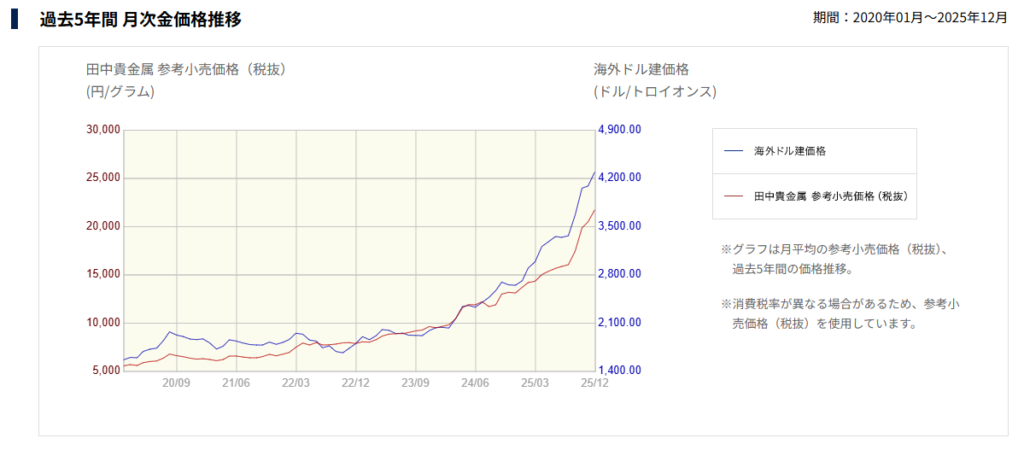 調べてみたらびっくり。過去5年で4倍位になっているのです。特に直近の上昇率は金以上です。