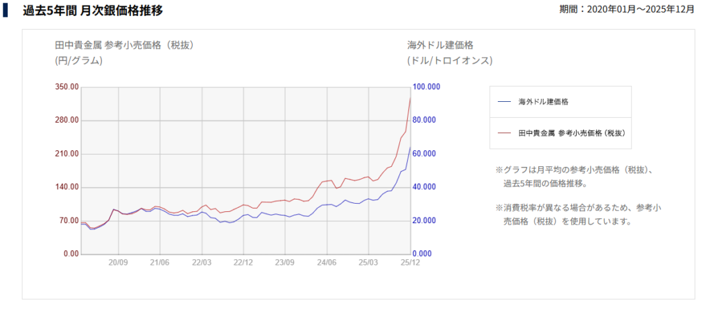 今日NHKで銀価格が高騰してると言うニュースをやっていました。